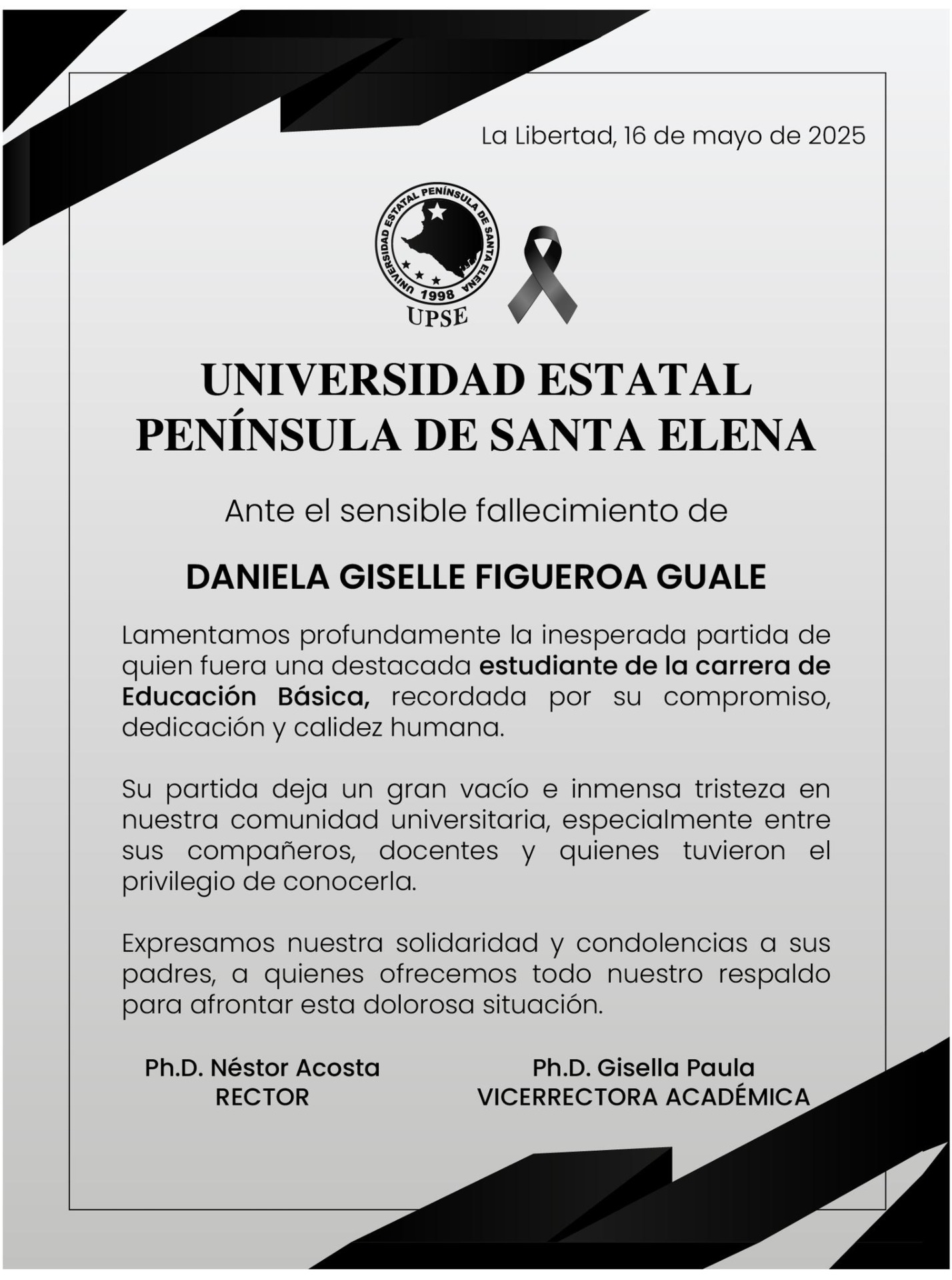 Esta galería lleva el nombre de nuestra estudiante, compañera y amiga Daniela Figueroa Guale, quien falleció de manera trágica y violenta a las afueras de la universidad el 16 de mayo del presente año. Muchos de los cuadros que se produjeron en el eje poesía-música-pintura antes del trágico suceso, acompañaron el homenaje que los estudiantes de la Carrera de Educación Básica organizaron en la universidad por la prematura partida de su compañera. Esta galería se ofrece como un tributo de amor y admiración a la corta y ejemplar vida de Daniela, así como un llamado para que nunca más un ser humano, menos aún, un miembro de nuestra familia universitaria pierda su vida en las puertas de la "Casa Grande", símbolo de la esperanza por un futuro mejor.